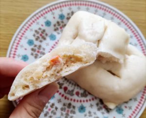 生地はパンというより肉まんの皮のようで、ほんの少し甘いです。